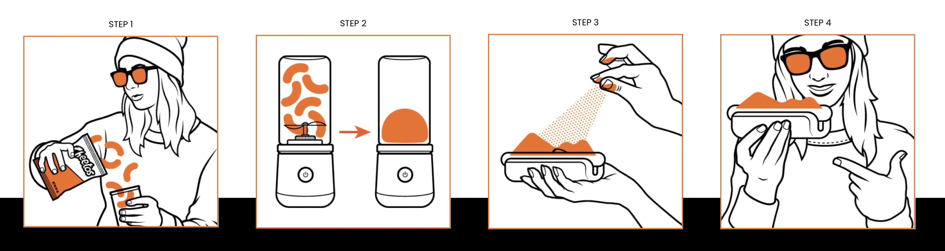 Cheetos arrive donc avec un mixeur, le Cheetos Duster, qui permet d’agrémenter ses créations culinaires avec cette fameuse poudre orange. Inutile ? Sûrement, mais on aime ! Un mini mélangeur que la marque va mettre à la vente sur Amazon.