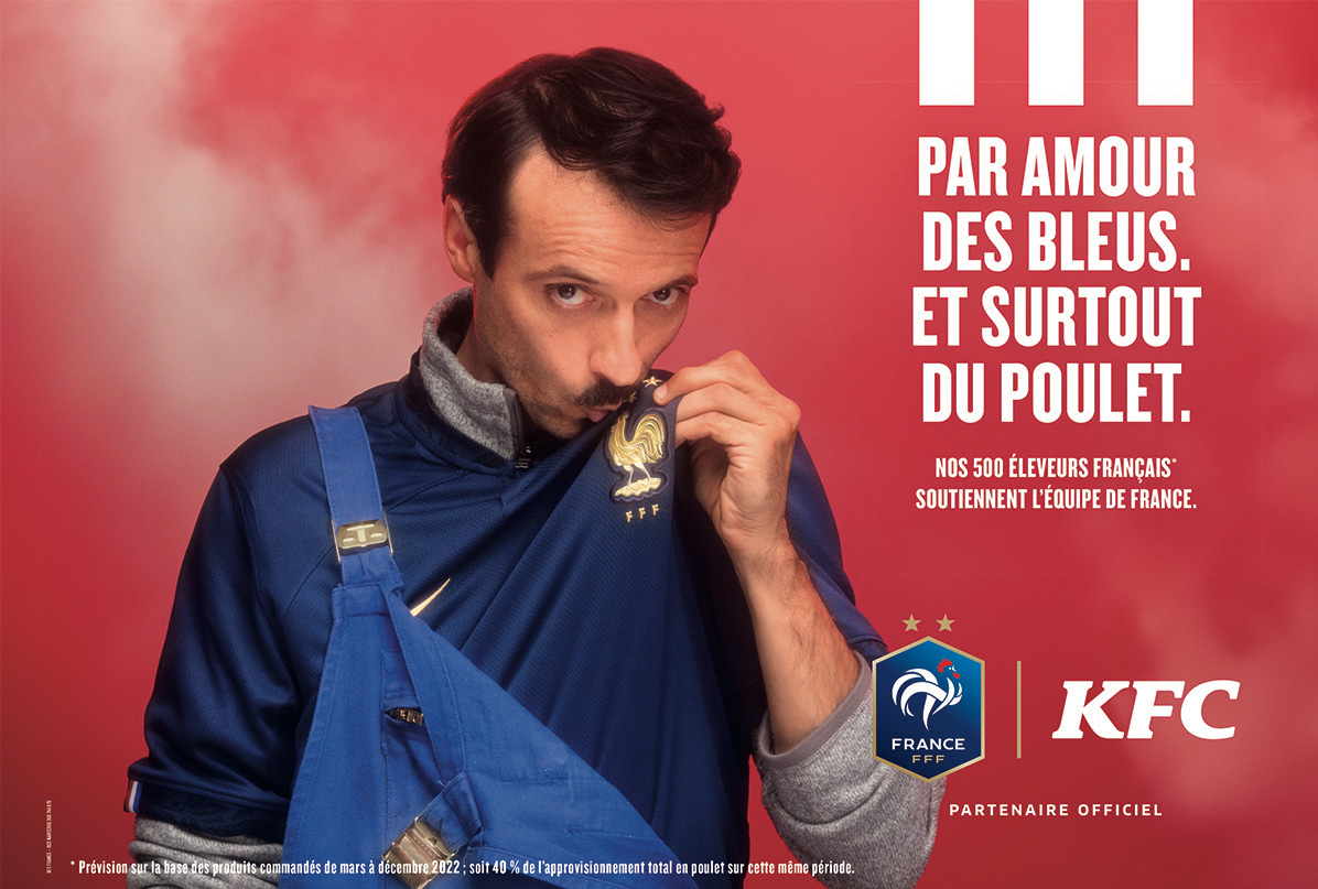 Dans la lignée du poulet jongleur de 2021, on lui découvre cette année de nouvelles attitudes dignes des plus grands buteurs. Tout cela sous les yeux fiers de ses 2 éleveurs français qui eux aussi par amour des bleus, et surtout du poulet, embrassent l’écusson sur leur maillot. C’est aussi l’occasion pour KFC de mettre en avant sa nouvelle musique « Crispy », composition originale, rythmée et enjouée. Au-delà de la performance artistique du gallinacé, le film met en avant la qualité du poulet, choisi et élevé en France par les éleveurs.