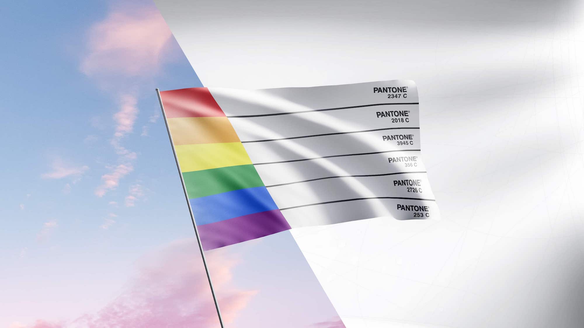 Le traditionnel drapeau arc-en-ciel apparaît dorénavant blanc, tandis que chaque coloris a été remplacé par son code couleur Pantone, rendant leur distinction impossible par les autorités.