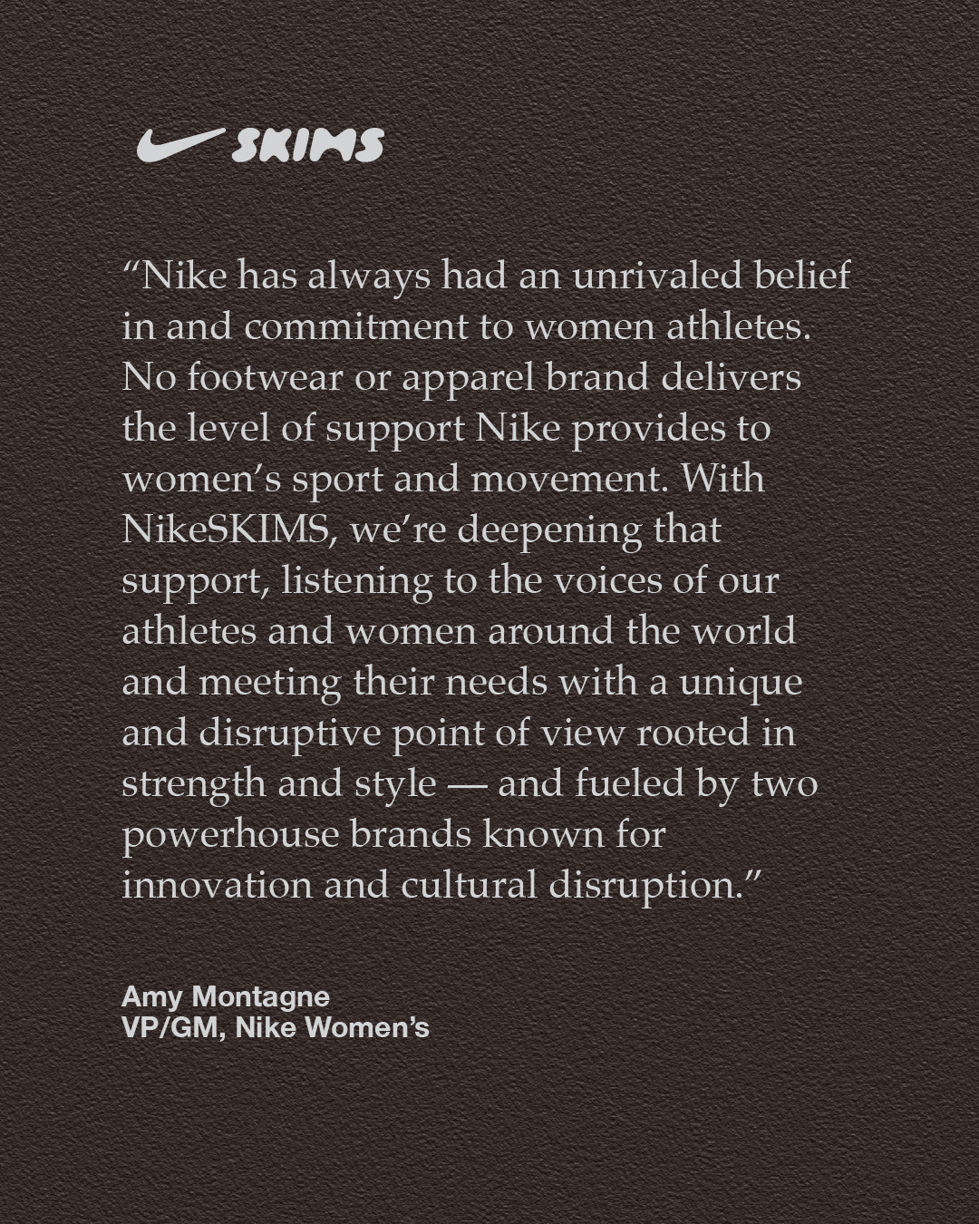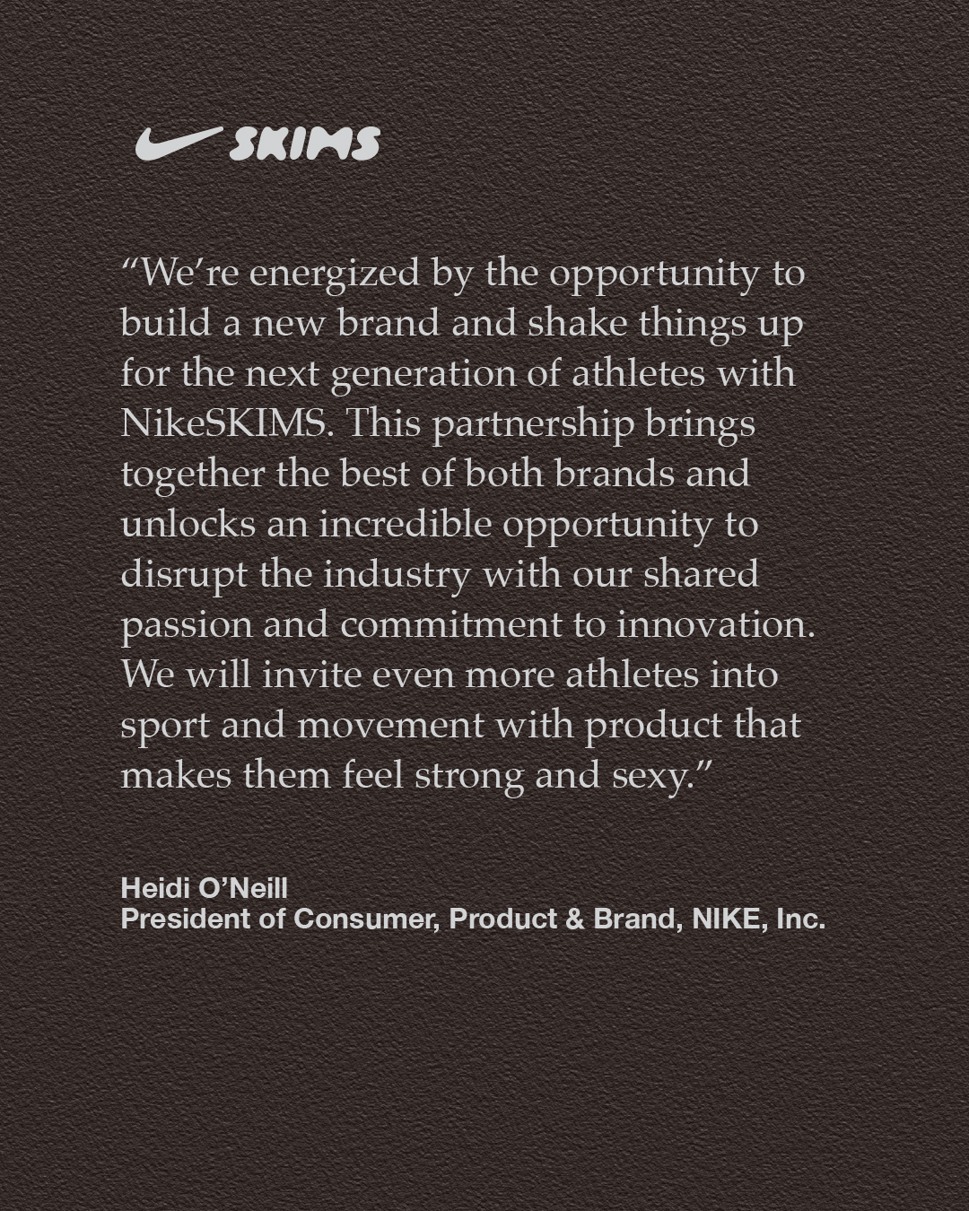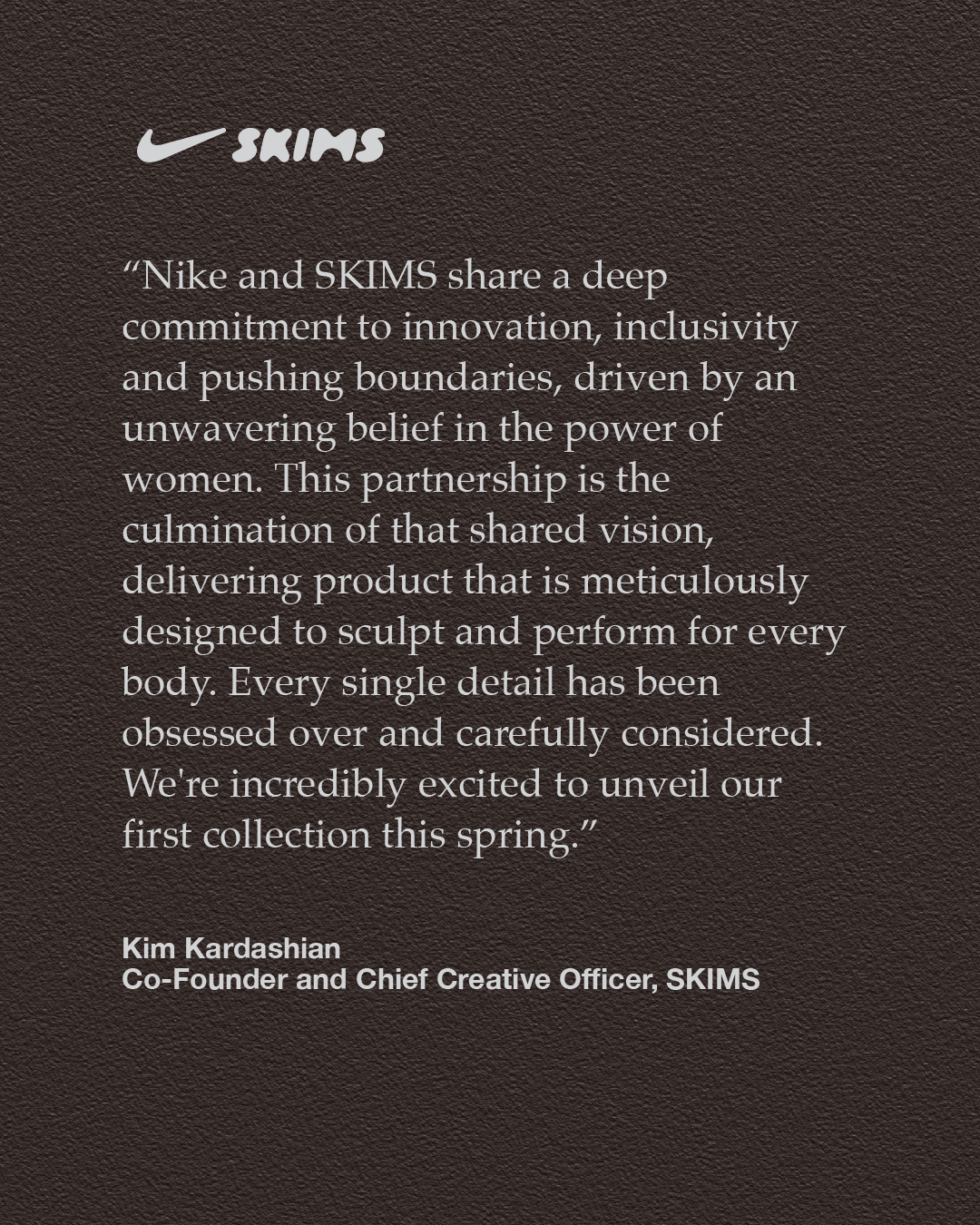 Cette collaboration entre le géant du sport et la marque de lingerie s’inscrit dans une volonté commune de redéfinir les standards du marché du sportswear féminin. Kim Kardashian, fondatrice de Skims, a déclaré que ce partenariat permettrait de proposer des produits « méticuleusement conçus pour s’adapter à tous les corps ». La marque NikeSKIMS ambitionne de faire entrer encore plus de femmes dans l’univers du sport.