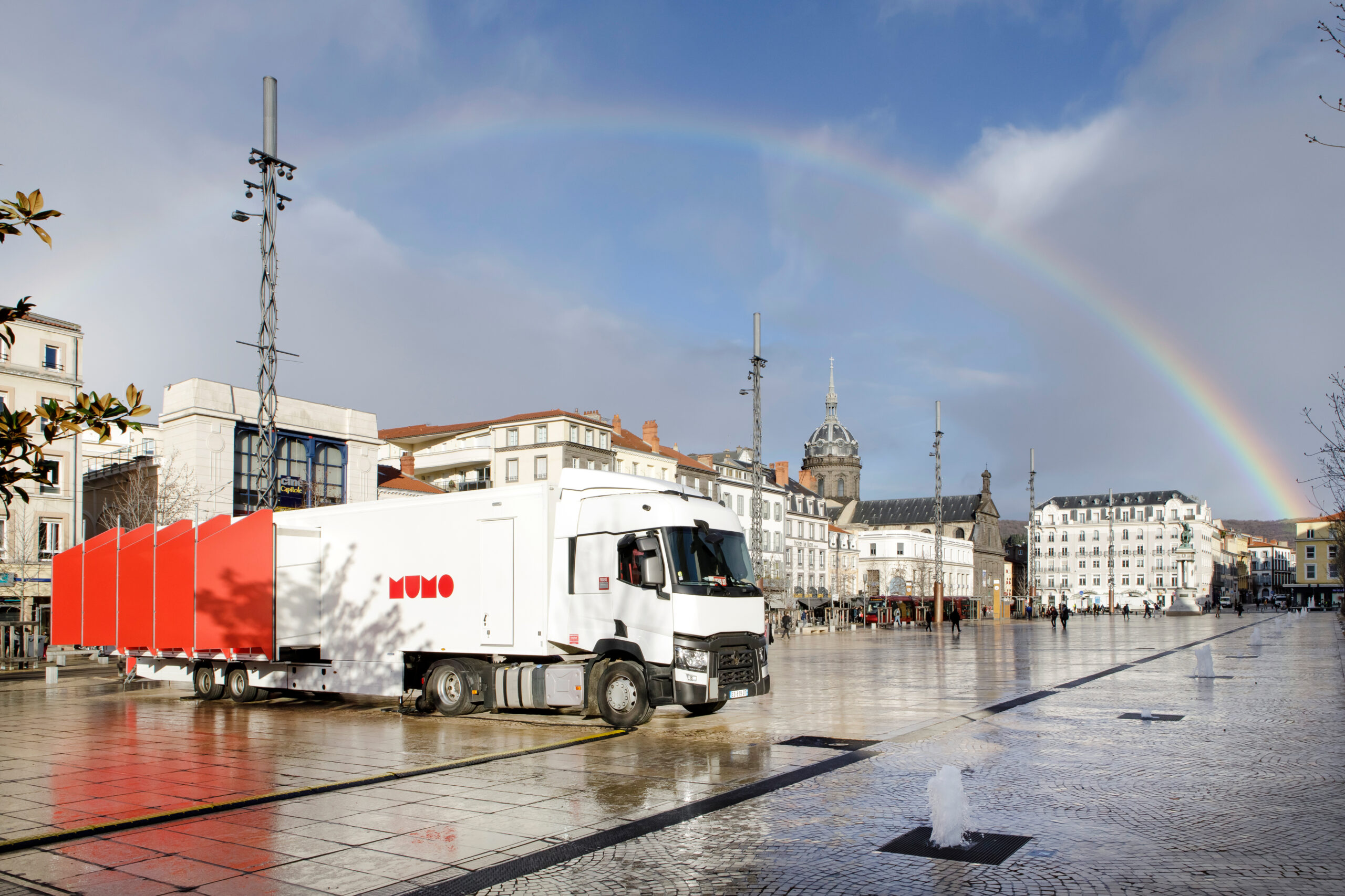 Créé par Hérault Arnod Architectures et l’artiste Krijn de Koning, le MuMo ne se limite pas à être un simple moyen de transport. Il offre une expérience artistique complète en se déployant en trois espaces distincts. Une loggia, se dévoilant tel un rideau de scène, conduit à une salle d’exposition de 35 mètres carrés où les œuvres du Centre Pompidou prennent vie. Une alcôve attenante ajoute une dimension multimédia avec des projections de films ou des expositions de sculptures.